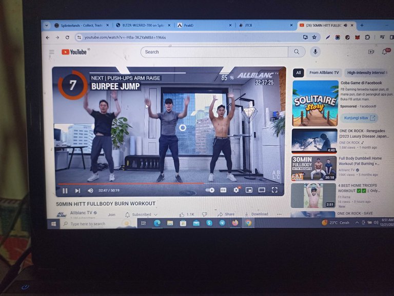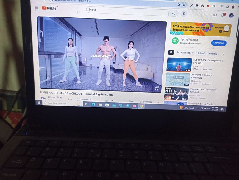 Today's exercise is still the same as yesterday, I still use youtube from the Allblanc channel to exercise. First is a dance video to heat up then followed by 1000 calories hiit cardio
