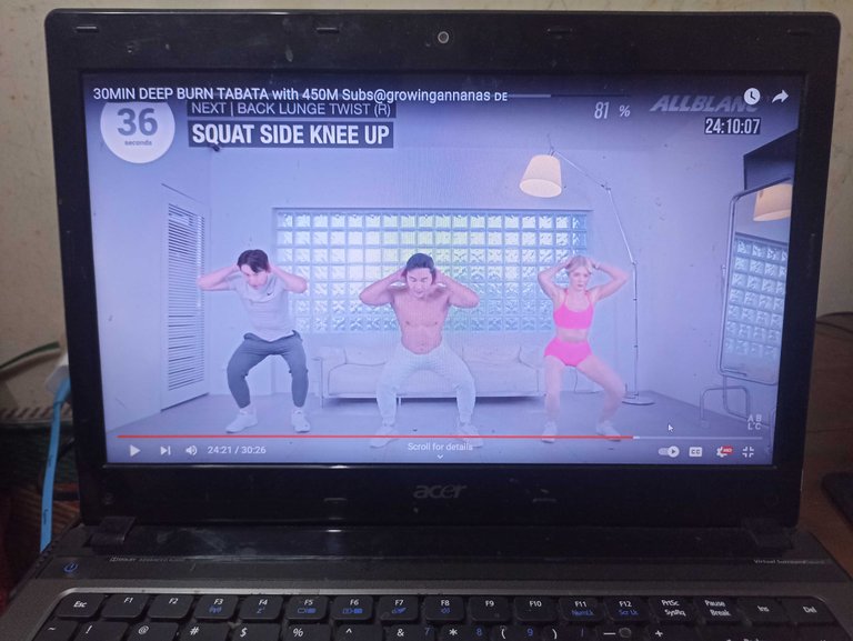 After going home and resting, it was time to exercise again. It feels like I want not to exercise anymore, considering the arms, calves and thighs that still feel pain. But finally I can convince myself that I have carried out the commitment I made yesterday, which is to exercise 5x a week and maintain a diet to be able to lose body fat. And yes, today's training is still accompanied by the Allblanc youtube channel with only 1 30-minute video.