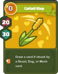 That was before playing 2200 cups when I got to this elo I found many teams that already adapted to my team and beat them very easily because many teams have the plant with the cattail slap that the effect of this is that if it is attacked by bug or beast cards will draw a card then I would be practically changing the cards if you use that card when I use my discard another thing that I find a lot and is the most annoying are the mech and beast that go last with death kiss and hare dagger. mech and beast that go last with the build of death kiss and hare dagger because as I said my plant is full counter of the mele by numbing but against these beast is practically useless the only way I can beat them is to have 4 energy and use the combo of double sugar rush with double zigzag the rest is very difficult to win because it will practically be stealing cards with the hare that and together with the death kiss is very complicated.